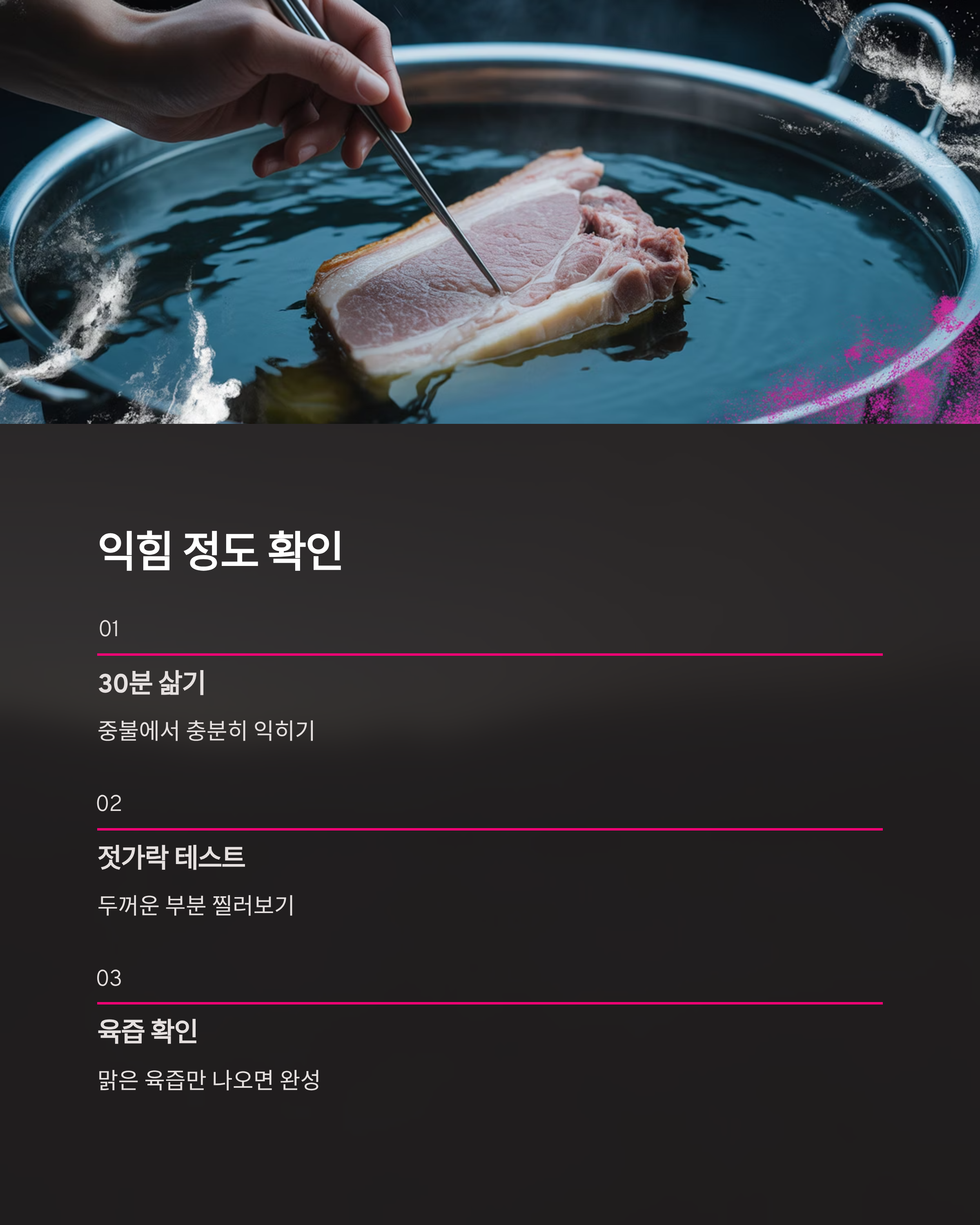 💡 핵심 포인트 2: '뜸 들이기'가 수육의 생명